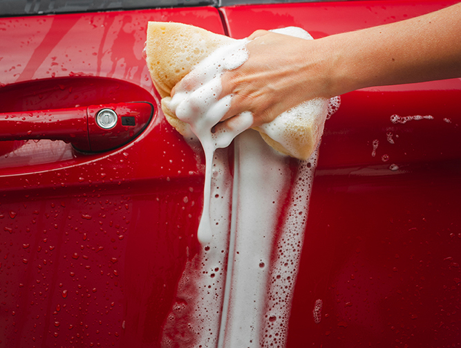 2. Disuelva completamente e inicie el lavado del auto, frotando con un trapo la carrocería.