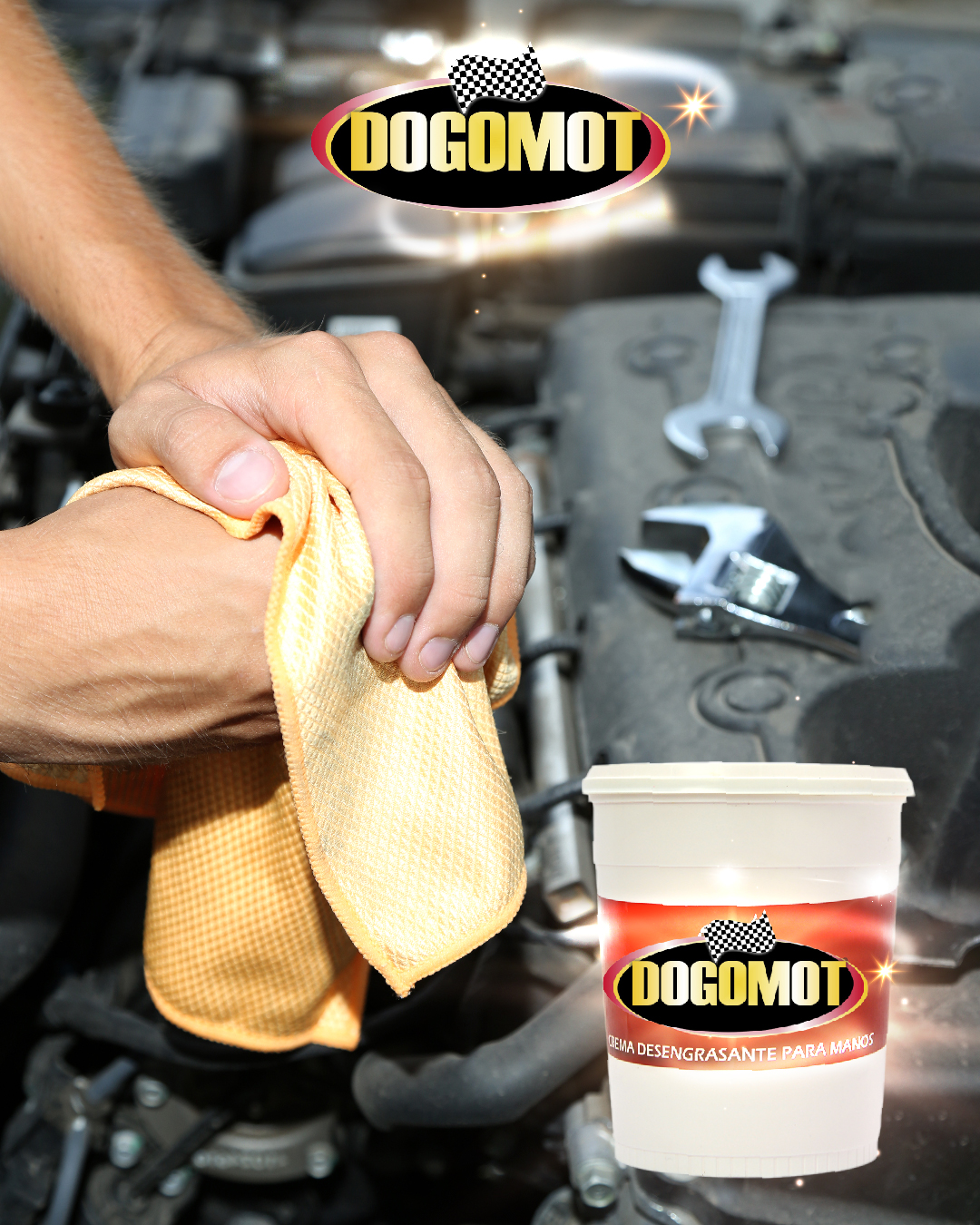 Dogomot® Desengrasante mineral para manos elimina grasa de automóviles, lubricantes y aceite en segundos, sin irritar la piel. Su fórmula de pH neutro disuelve grasas minerales rápidamente y deja un aroma cítrico agradable. Ideal para talleres, mecánicos y cualquier situación que requiera limpieza eficaz sin dañar la piel.